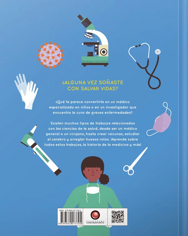 Aprende sobre este y otros trabajos que salvan vidas, repasa la historia de la medicina y conoce algunos curiosos datos recorriendo este hermoso y colorido libro ilustrado.
