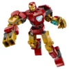- Armadura robótica de Iron Man construible: La figura articulada cuenta con brazos, piernas y dedos móviles; el torso se abre y contiene una cabina con espacio para la minifigura de Iron Man.