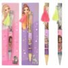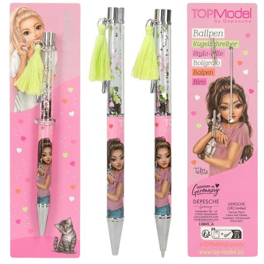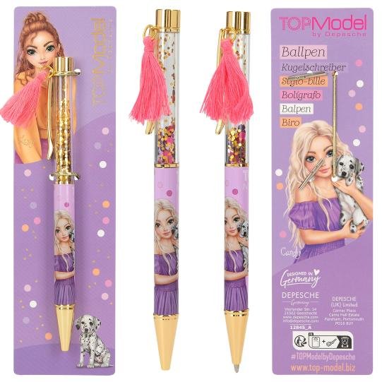 Confeti, borla y modelos de TOPModel, la mezcla perfecta para el boligrafo preferido – Este boligrafo esta disponible en dos disenos (lila-dorado con pompon rosa y confeti del mismo colorido / plata rosa con pompón verde lima y confeti del mismo colorido) y lleva mina de tinta azul recambiable. Cool: la parte superior del bolígrafo es transparente y el confeti multicolor se mueve al escribir. VENTA POR UNIDAD.