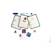 Una caja de alfabeto magnético única que viene completa con letras magnéticas, mosaicos magnéticos con ilustraciones de animales, tarjetas de muestra y un bolígrafo de pizarra donde pueden practicar sus habilidades de escritura a mano.