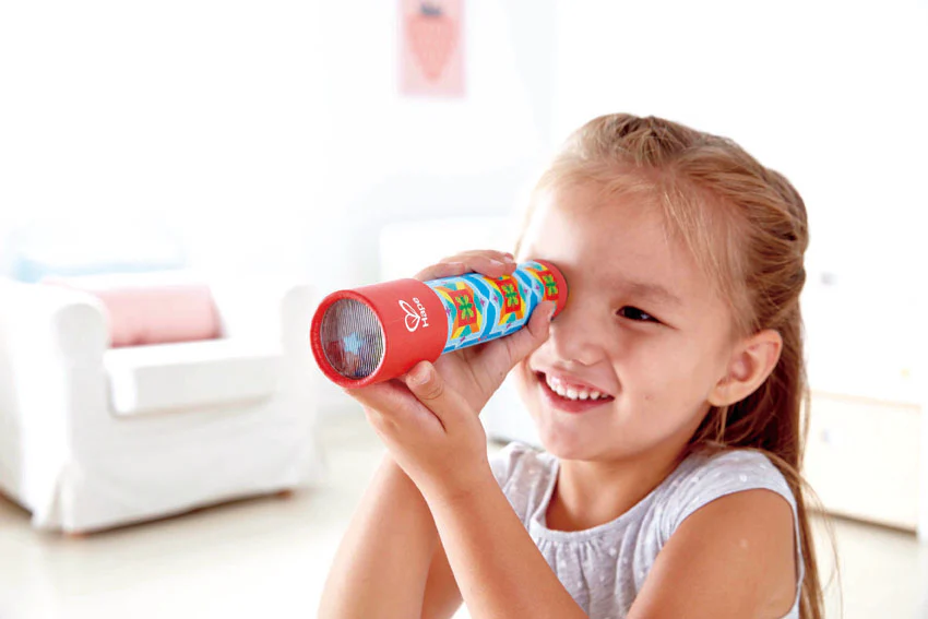 Crea una variedad infinita de patrones y colores cuando se gira el extremo. Un juguete simple y atractivo que disfrutarán tanto adultos como niños. Hecho de papel y plástico. Para mayores de 3 años