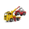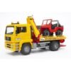 Fantástico Camión De Auxilio MAN TGA Con Vehículo Todo Terreno de Bruder, es perfecto para incluir en la colección de los más pequeños amantes de los camiones.