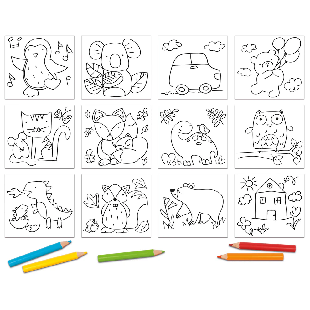 El primer set de coloreado que guía al niño para colorear correctamente dentro de los márgenes de la imagen de manera autónoma. Los dibujos están impresos con una tinta especial que pone en evidencia el límite dentro del que hay que colorear, y así anima al control del gesto gráfico. Los super lápices del set tienen una forma adecuada para las manos de los más pequeños.