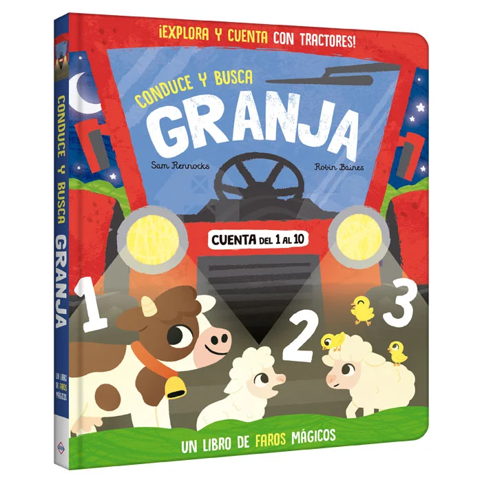 ¡Conduce y busca en la granja y emprende una aventura para encontrar y contar! Con un timón fácil de usar en cada página de la derecha, simplemente gira el volante para descubrir imágenes ocultas en los haces de luz de los faros del tractor y cuenta del 1 al 10.