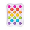 ¡La mejor experiencia dimpl ™! Construidas en el marco de plástico resistente y de alta calidad hay 18 burbujas dimpl ™ en dos tamaños diferentes esperando ser empujadas, pinchadas y reventadas una y otra vez. La silicona blanda es fascinante para los dedos. Ver el tablero pasar de no reventado a reventado es curiosamente satisfactorio. Joven, viejo, no importa quién seas, ¡tus dedos no pueden parar! Fomenta la motricidad fina, el aprendizaje sensorial, la calma. Perfecto para todas las edades: viajes, relajación en casa, descubrimiento sensorial y aprendizaje.