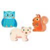 Tres animales del bosque aparecen en este primer rompecabezas para los más pequeños; una ardilla, un búho y un oso.