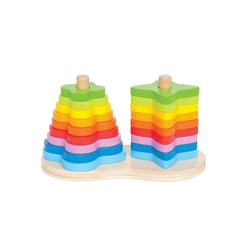 Dos formas y nueve colores se convierten en un sinfín de posibilidades para apilar y clasificar.
