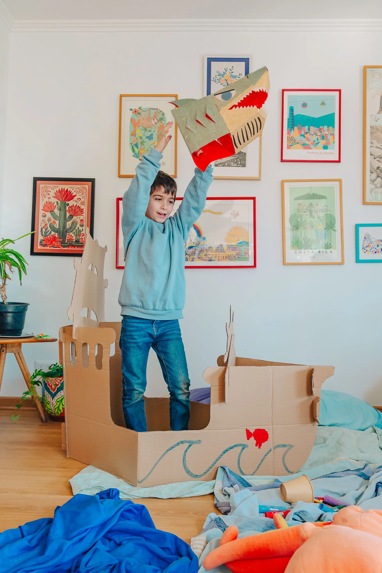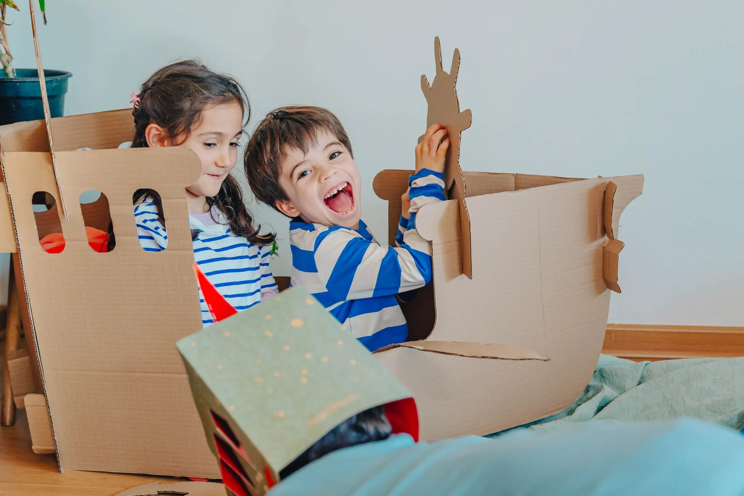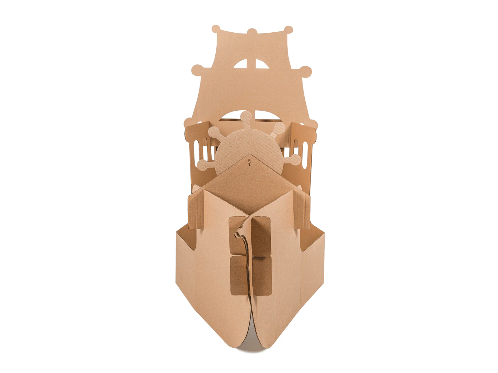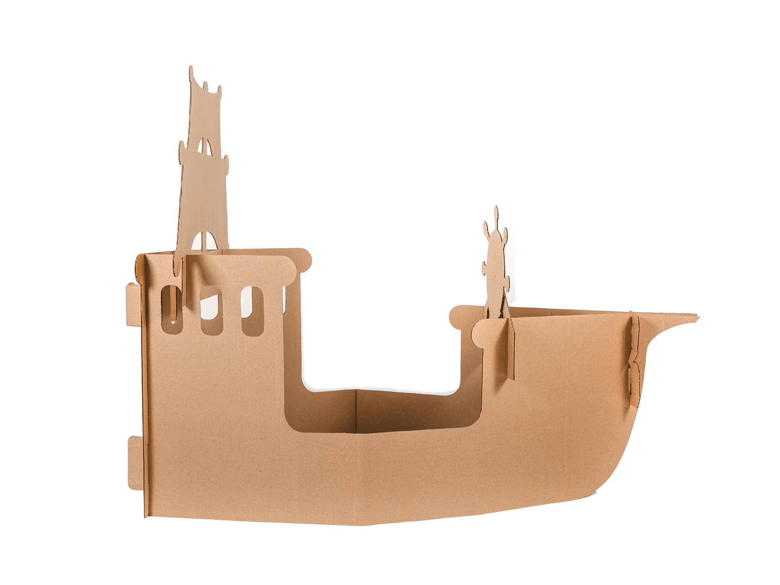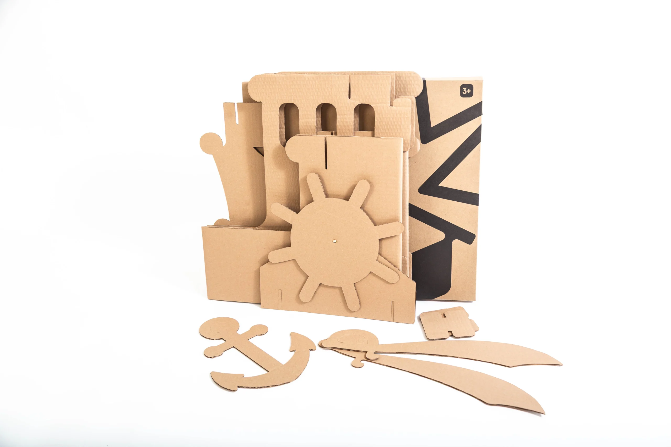 Este juguete es ideal para jugar al interior de la casa o al aire libre. Está elaborado con cartón corrugado café de 6 mm de espesor, resistente y perfecto para ser pintado con lápices o témperas. Desarrolla además tu imaginación, creando y personalizando tu barco con tus propios diseños.