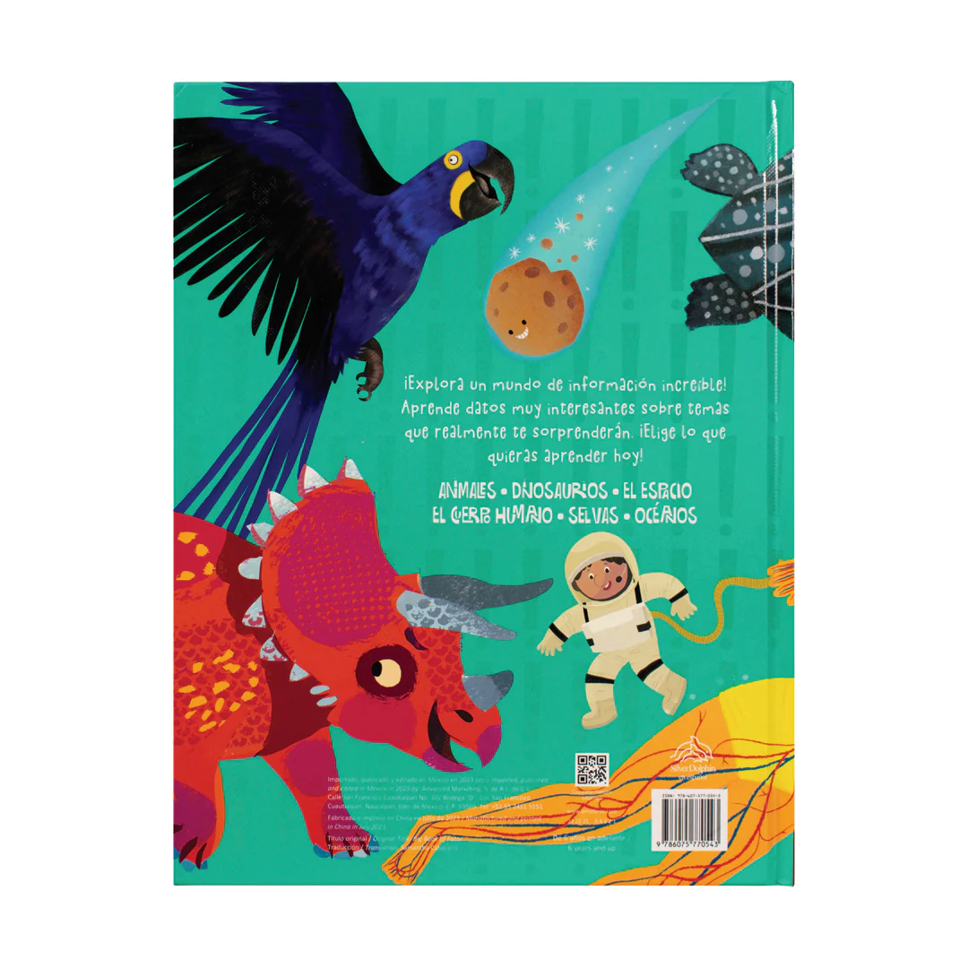Animales, dinosaurios, el espacio, el cuerpo humano, selvas, océanos… Tienes en tus manos un libro repleto de asombrosos datos e ilustraciones que harán que te conviertas en todo un experto en cada una de estas materias.