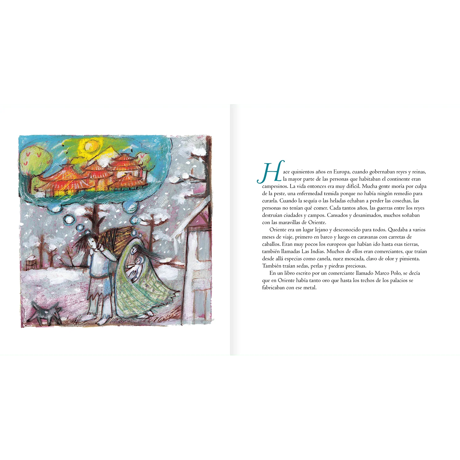 Cristóbal Colón era un navegante deseoso de gloria y aventura. Pensando y mirando sus mapas se convenció de que podía llegar a las ricas tierras de oriente navegando desde España hacia el oeste, para llevar de vuelta oro, especias y piedras preciosas.