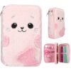 Qué dulce y suavecito – Este estuche rosada de Princess Mimi tiene el diseno de una foca cubierta con pelo suave, carita preciosa bordada y aletas aplicadas. Los dos compartimentos separados se venden completamente llenos con 12 lápices gruesos de colores, 2 rotuladores de gel de purpurina, lápiz, regla con plantillas, goma de borrar, sacapuntas doble, tijeras y pegamento. Material principal: poliéster 100 por 100.