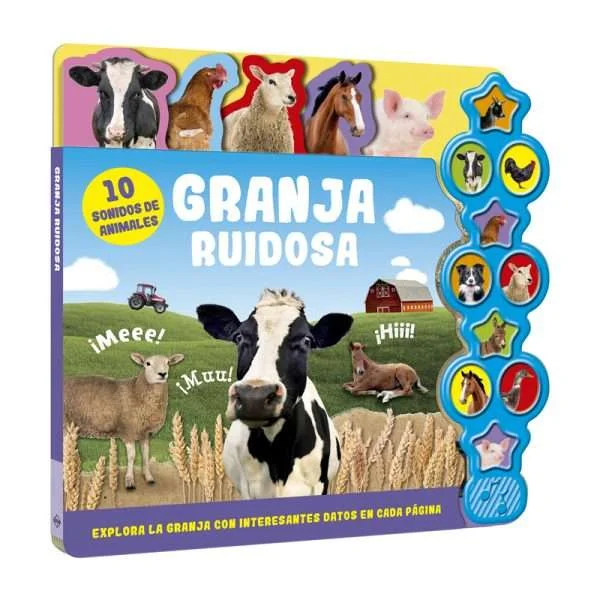 Con Granja Ruidosa: 10 Sonidos, aprende todo sobre los animales de la granja con este ruidoso libro lleno de información. Con 10 sonidos de animales y un tablero con sencillos botones, es perfecto para explorar la vida en la granja.