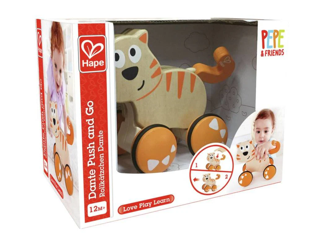 Dante es un lindo gatito que necesita la ayuda de tu pequeñín para caminar. Y es que si se aprieta el lomo del gato… ¡éste avanzará! Este juguete es ideal para promover el desarrollo de las habilidades motoras mientras el peque se divierte y experimenta.
