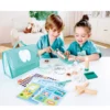 Este juego de Clínica Dental Sonriente cuenta con herramientas de simulación ultra realistas y viene con un kit de diagnóstico y tratamiento portátil, lo que permite a los niños sumergirse en todo el proceso de tratamiento dental para la caries, mejorar la cognición y eliminar el miedo en el juego de jugar a las casitas.