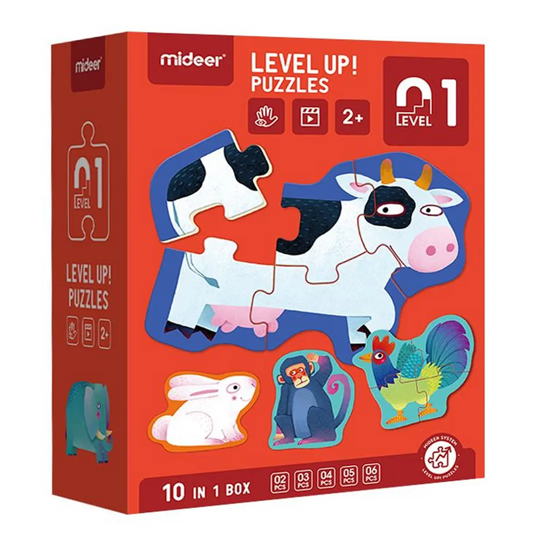 De 2 a 247 piezas, simples a complejas, las ilustraciones de esta serie, dibujadas por una artista e ilustradora francesa, Maud Lienard, brindan a los niños una experiencia estética de alta calidad. Nivel 1 Incluye 10 puzzles progresivos de animales, 2 de 2 pcs, 2 de 3pcs, 2 de 4pcs, 2 de 5pcs, y 2 de 6pcs