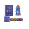 También proyecta estrellas y lunas lo cual lo hace muy entretenido a la hora de dormir. Incluye pilas, Viene en una caja con cierre magnético ideal para regalo.