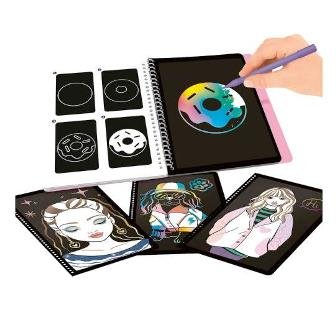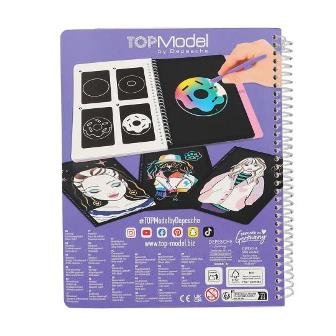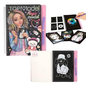 El cuaderno TOPModel Magic Scratch contiene todo lo necesario para crear auténticas obras de arte con solo rascar: 20 páginas con diseños monísi mos, instrucciones sencillas y el lápiz para rascar correspondiente.