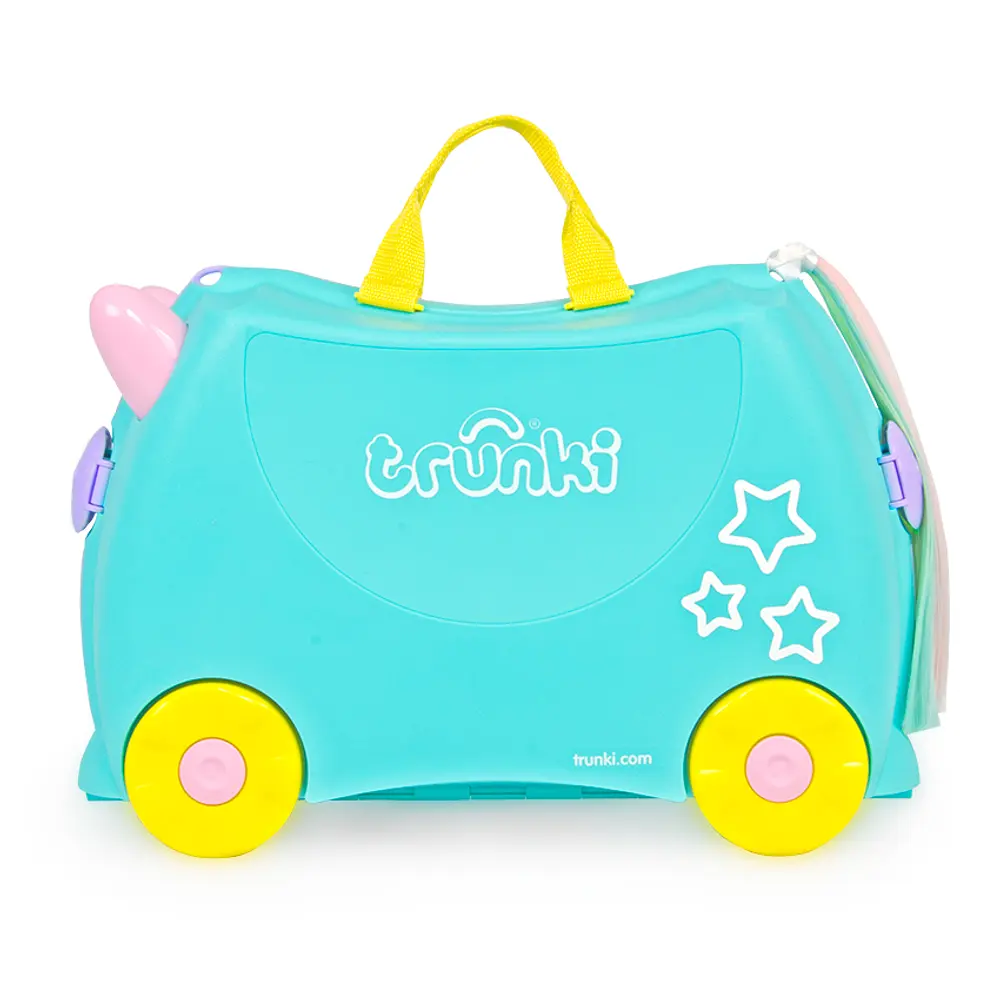 Trunki fue creada para combatir el aburrimiento de los pequeños viajeros. Diseñada para ser utilizada como equipaje de mano, los niños pueden empacar sus pertenencias favoritas y transportarse. Incluye una correa para que los padres puedan remolcar a sus hijos.