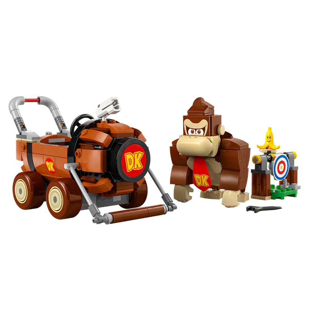 - Un divertido set Nintendo® coleccionable: Compite y apunta a la diana pilotando el Jumbo DK de Donkey Kong con este set LEGO® Super Mario™: Mario Kart™.