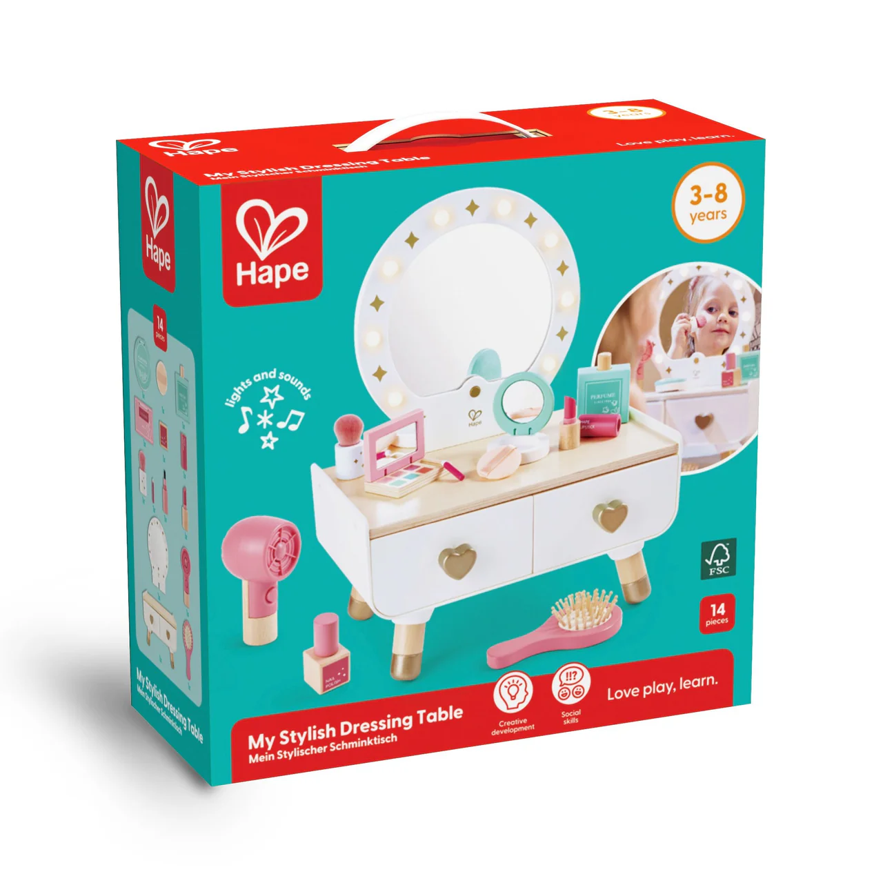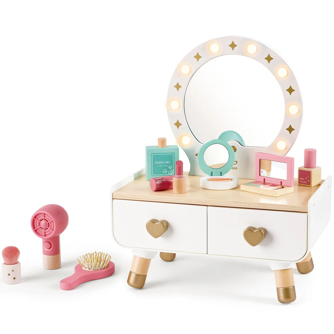 Desata la creatividad y el juego imaginativo con esta elegante mesa de tocador con luces. Los niños pueden perfeccionar sus habilidades de maquillaje y cuidado personal mientras practican con accesorios realistas.