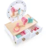 • KIT DE COSMÉTICOS COMPLETO: Este tocador viene con una variedad de accesorios como brocha de polvo, puff, esmalte de uñas, lápiz labial, sombra de ojos y secador, permitiendo que los niños exploren diferentes rutinas de belleza.