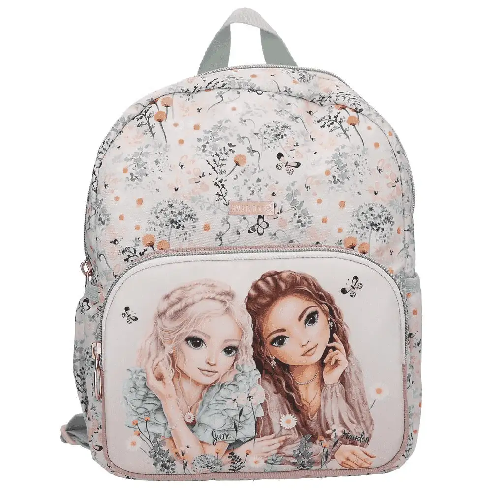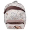 Esta bonita mochila es una companera ideal para el colegio o simplemente para el tiempo libre. Ofrece espacio suficiente para la bebida, la fiambrera, la ropa y otros objetos. Tiene un gran compartimento principal, bolsillo delantero independiente y dos compartimentos laterales. Las correas para los hombros son ajustables en longitud y hacen que sea cómoda de llevar. Esta decorada con motivos florales y mariposas.