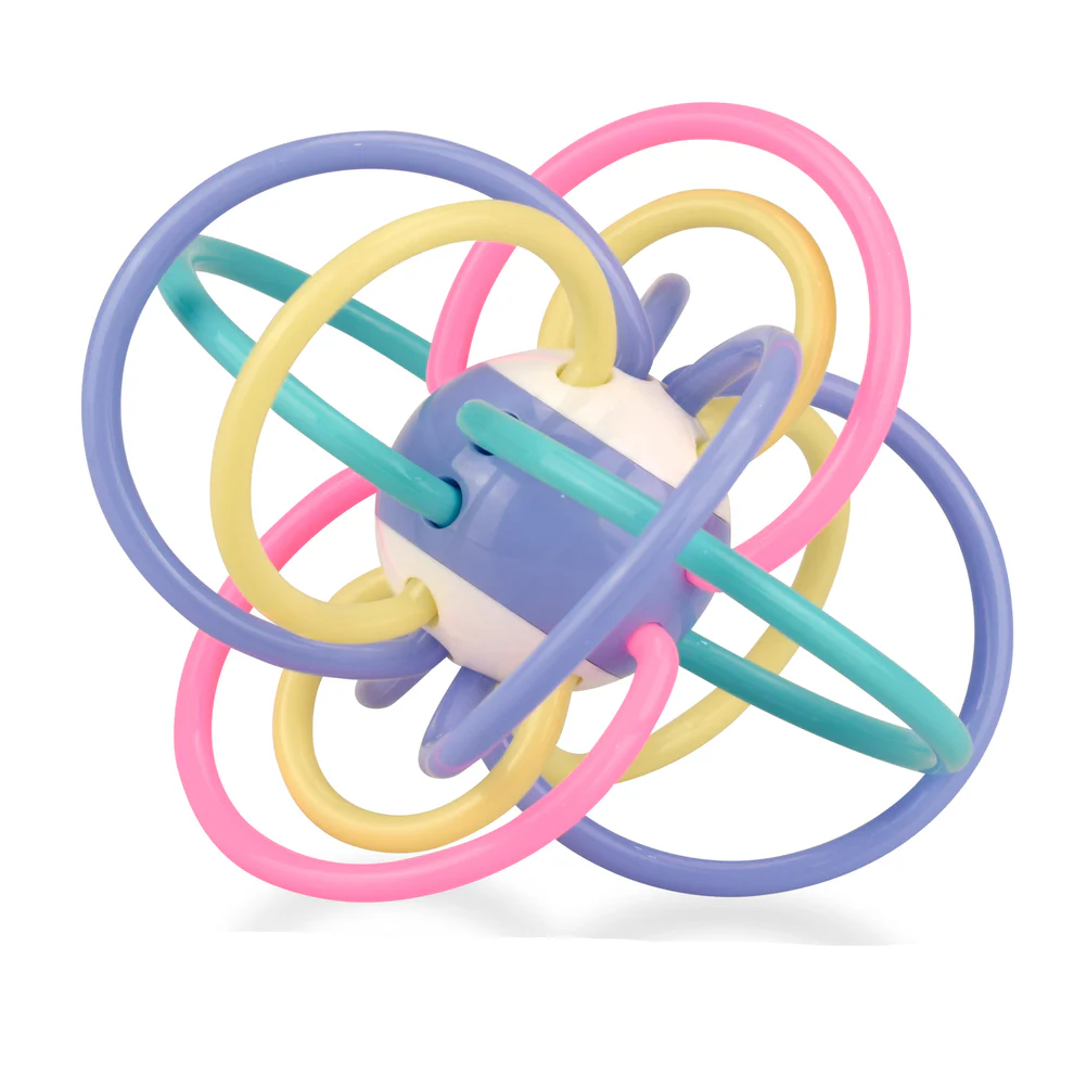 Sonajero y mordedor molar para entretener y cuidar a los infantes al momento de salir los primeros dientes. Su laberinto de tubos suaves, continuos y colores deslumbrantes captura y retiene instantáneamente la atención de los pequeños.