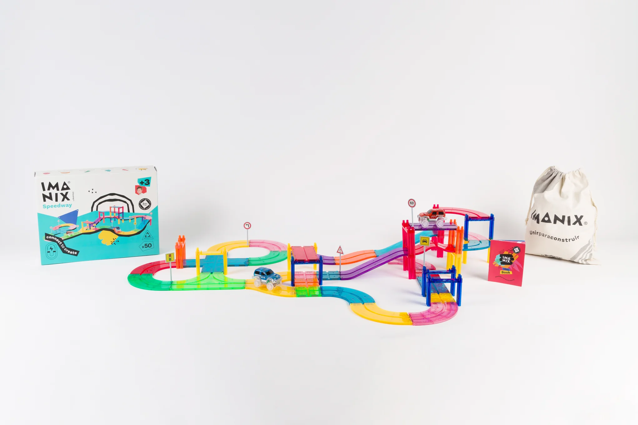 3..2..1 ¡VAMOS! Enciende los motores y parte tu aventura hacia la meta a toda velocidad. ¡Siente la emoción con IMANIX Pista de Carrera 50 Piezas! Este conjunto magnético ofrece una experiencia única de carreras, permitiéndote construir circuitos personalizados con saltos, loopings y rectas para pruebas de velocidad máxima. Perfecto para pequeños ingenieros y entusiastas de las carreras, este juego fomenta la creatividad y la destreza en un entorno emocionante y dinámico.