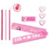 Set de escritorio de TOPModel para mejores amigas: 3 lápices con forma de corazón (mina HB), una regla plegable (30 cm) con ilustraciones coloridas y plantillas, 3 clips con forma de corazón y una goma de borrar rectangular con motivo de ositos monísimos. Todo en maravillosos tonos de la gama de los rosa.