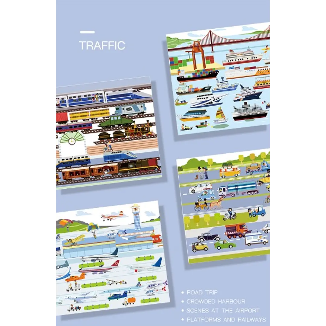 Set de stickers reutilizables, impermeables trae 4 diferentes escenas para jugar, pegar y despegar cuantas veces quieras, con fondo transparente para que se adapten a cualquier escena, 110pcs.
