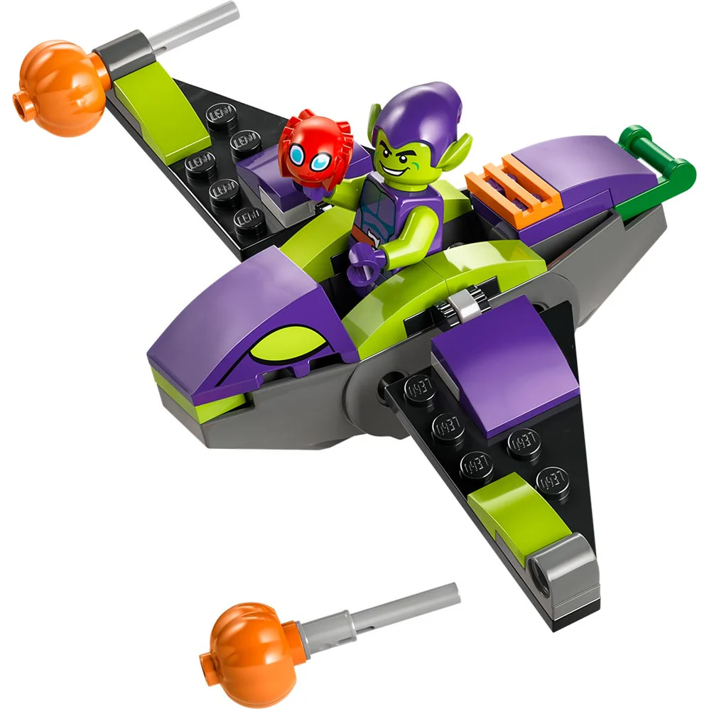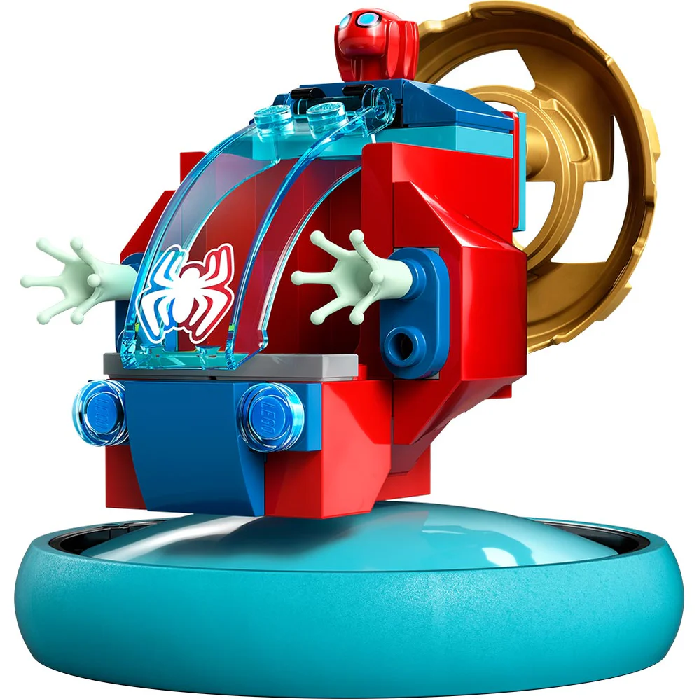Este set inspirado en Spidey y su superequipo, de Disney+, incluye una minifigura de Spidey y su aerodeslizador arácnido con hélice giratoria y cabina abatible, una minifigura del Duende Verde con su deslizador (equipado con proyectiles-calabaza) y una minifigura de Spider Fantasma con su gran telaraña dorada. Cuenta también con la figura de Trace-E, la amiga robot de Spidey, así como con accesorios marinos y un simpático cangrejo. El set contiene un ladrillo para principiantes que representa la cabina para facilitar la construcción e intuitivas instrucciones en forma de colorida historia visual.
