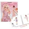 ¡Glamurosamente genial El cuaderno de dibujo Create your Glam Look de TOPModel tiene 36 páginas con figurines de modelos esperando a ser coloreadas y completadas con pegatinas. Se incluyen: 6 hojas de pegatinas brillantes con estampado en caliente (3 plateadas, 3 doradas).
