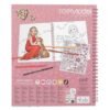 El cuaderno de dibujo de TOPModel con encuadernación de gusanillo gira en torno a la cool tendencia felina. 40 páginas para colorear con motivos de modelos estilosas y lindos felinos. Destaca especialmente la preciosa aplicación de una cría de leopardo en la portada. Además, también incluye una hoja de pegatinas para embellecer las obras de arte. VENTA POR UNIDAD.