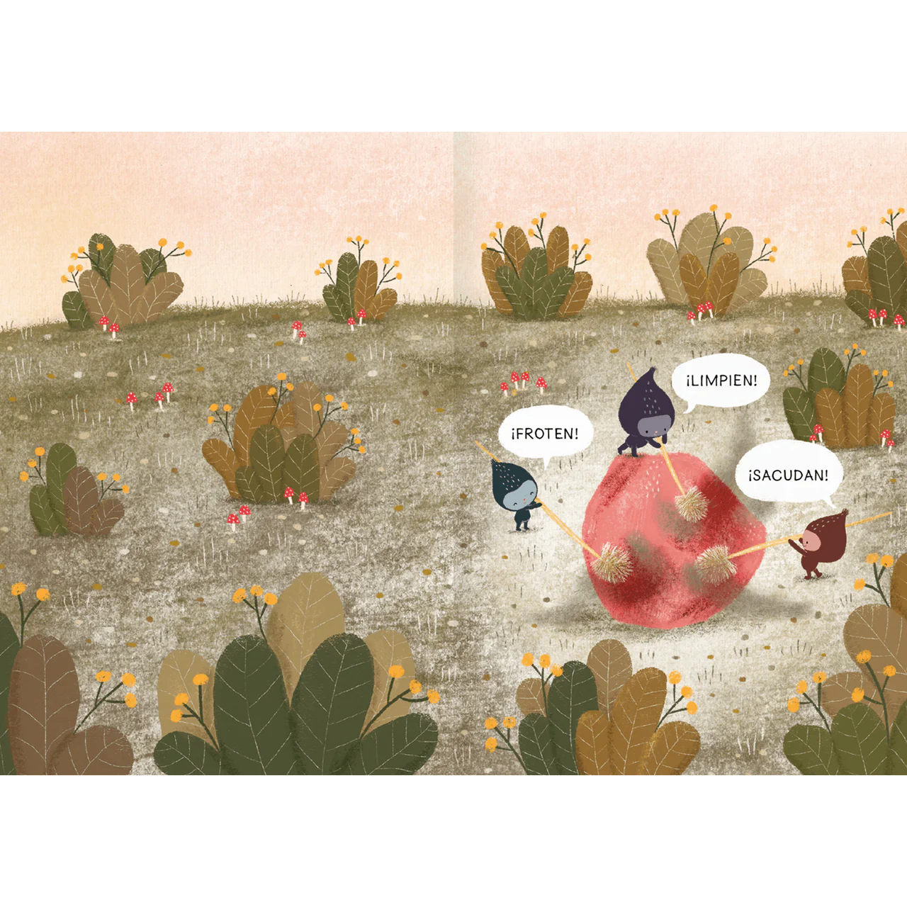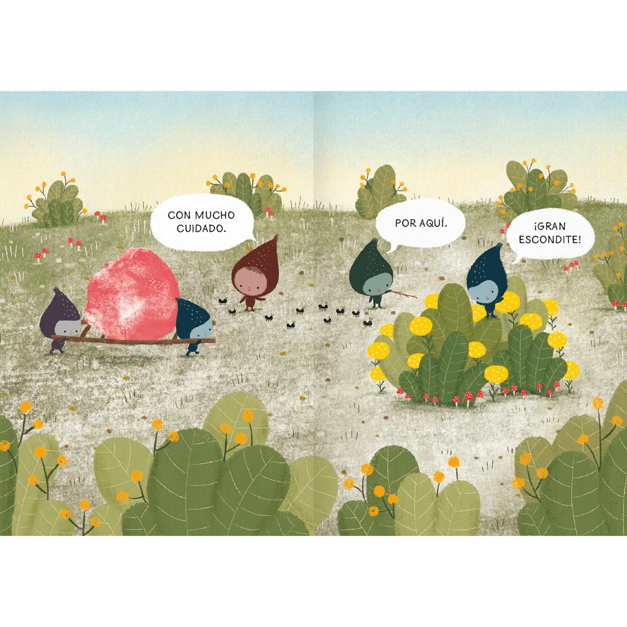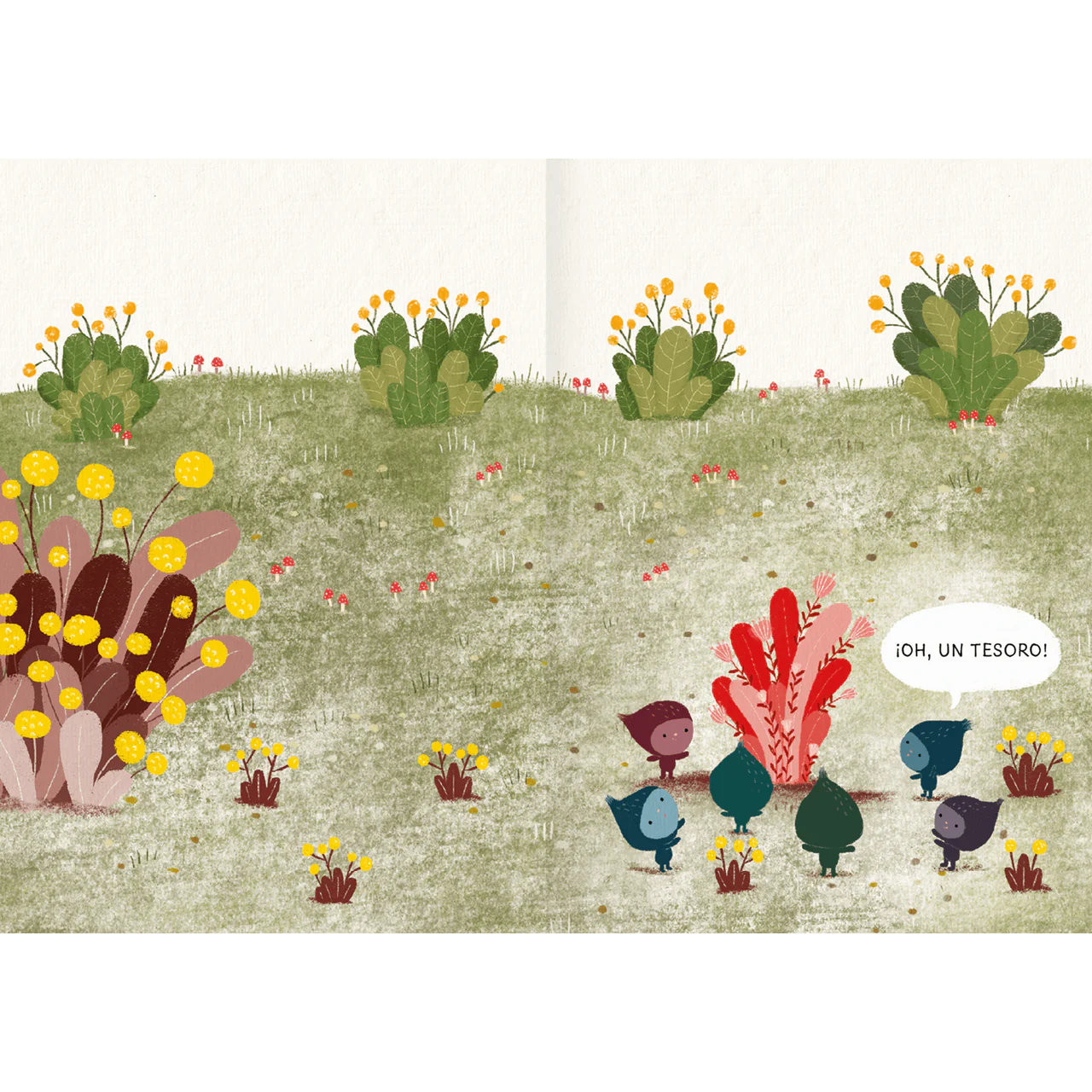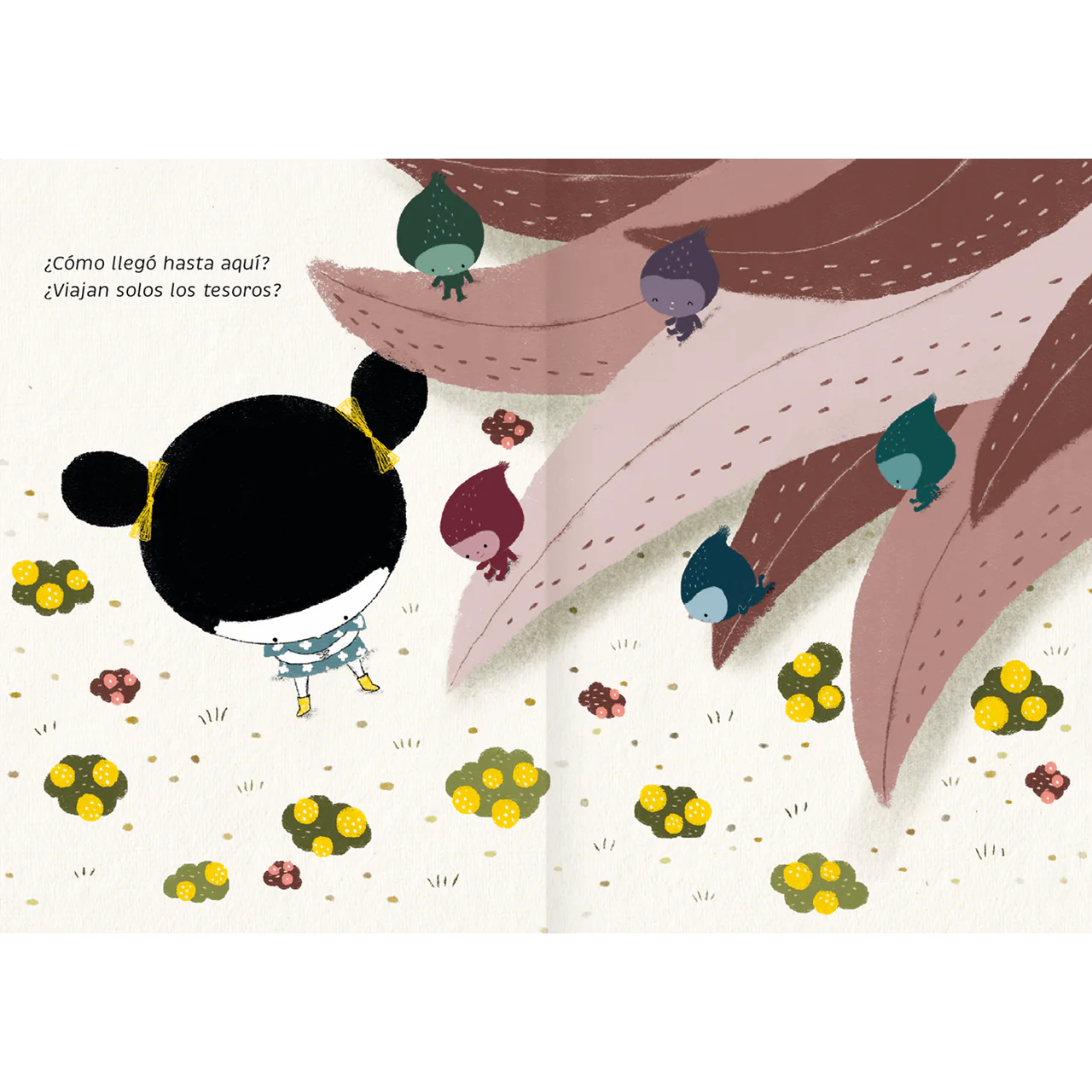 Escondidos en el paisaje hay tesoros que esperan ser encontrados: hojas, plumas, semillas, caracoles. La protagonista los descubre y se pregunta ¿de dónde vienen? ¿cómo llegaron hasta ahí? Acompáñala en la búsqueda de las respuestas.